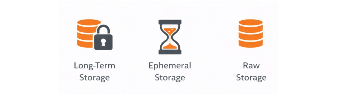 Raw Storage bildet die unterste Schicht und ist die technische Grundlage für andere Speichertypen. Sie ermöglicht den direkten, unformatierten Zugriff auf Speicherressourcen.
