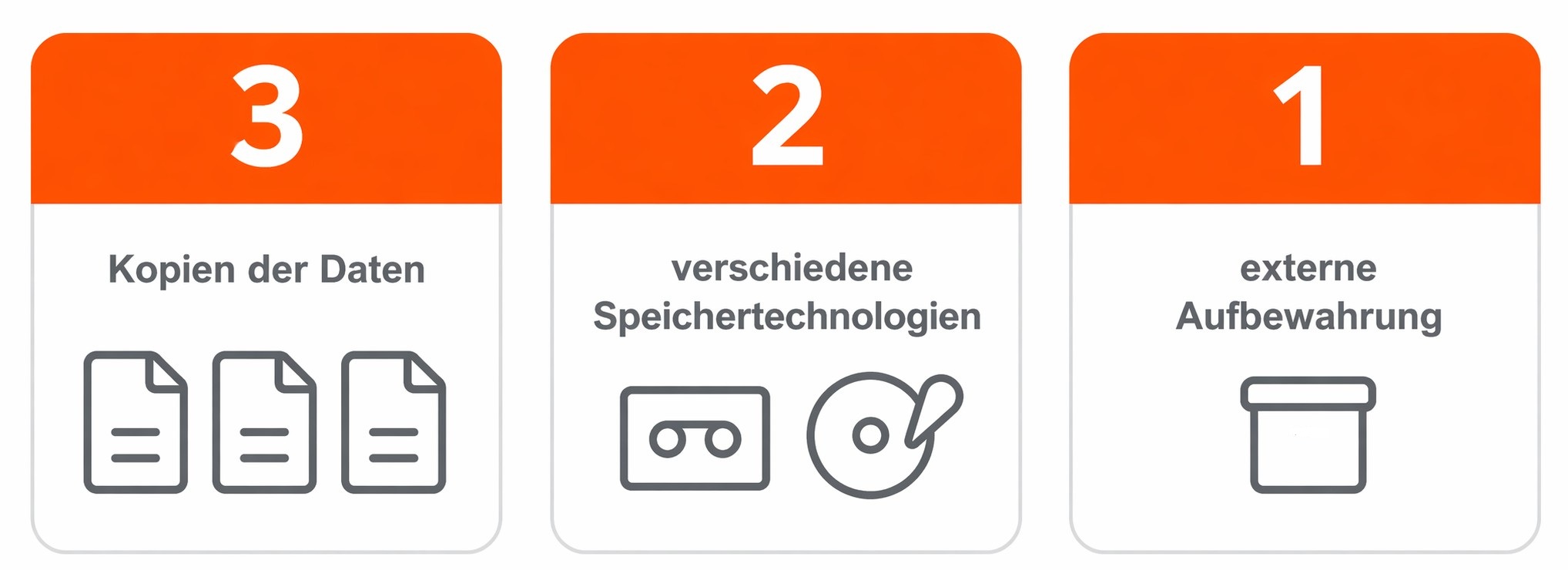 3-2-1-Regel gilt auch in Cloud-Umgebungen. Es müssen drei Kopien auf zwei verschiedenen Medien gespeichert werden, wobei sich eine davon außerhalb des primären Standorts aufbewahrt werden muss.
